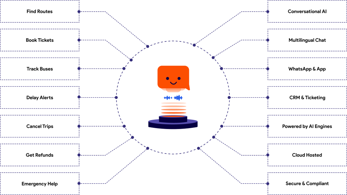Bus operators around the world are modernizing customer support —by adopting smart, conversational AI agents that deliver service passengers remember.With Gen AI-powered bus chatbots, you can: