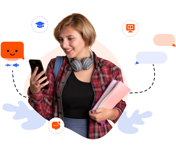 - Emily speaks to the voice bot for e learning via her mobile app.