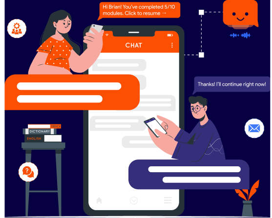 Higher completion rate. Real-time motivation. Smart re-engagement via the chatbot for learning management system.03.