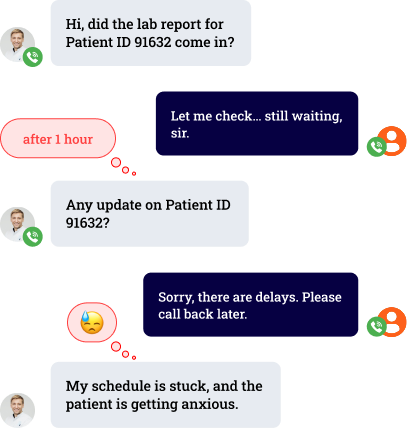 Raj, a dental associate, is awaiting a patient’s lab report to continue a follow-up procedure. He calls the front desk and lab multiple times, only to be told there are delays. The patient grows anxious, and Raj’s entire day gets backed up.